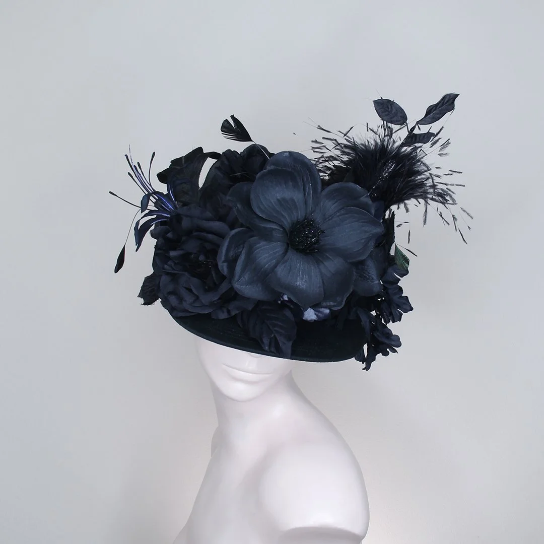 Kohl leather mico-beret with harlequin diamanté trim and magnolia sprig.